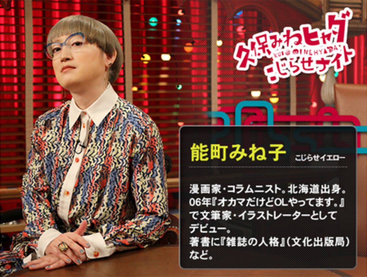 こじワセ こじらせライブin早稲田 A Twitteren 出演者紹介 能町みね子 漫画家 エッセイスト 自身を綴ったブログ オカマだけどolやってます が人気を集め書籍化された 久保ミツロウの親友であり 現在雑誌やウェブでの連載に加えてテレビやラジオで活躍